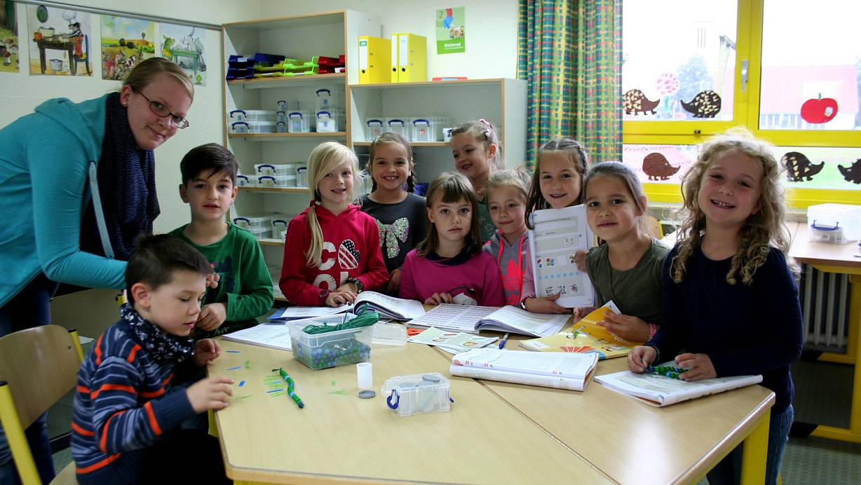 "Nur wer sich im Stoff sicher fühlt, meldet sich für die Überprüfung an. Auf diese Weise wollen wir den Kindern beibringen, sich und ihre Leistungen selbst einzuschätzen", sagt Lehrerin Andrea Jelonek. Neben den Selbstlernzeiten bringen Blockunterricht, Gruppenarbeiten und Spiele Abwechslung in den Schulalltag. In Partnerübungen können leistungsstarke Schüler den schwächeren Hilfestellung geben. "Das Erklären festigt nicht nur den gelernten Stoff, sondern trägt auch zum Selbstbewusstsein bei", skizziert Lehrerin Andrea Lenz das Vorgehen.