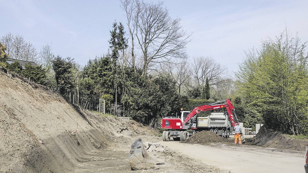 Überraschende Änderungen: Der Umbau der Birkenstraßen in Oetinghausen ist in vollem Gang. Allerdings sehen die Anwohner erst jetzt, wie die Umsetzung der Planung sich tatsächlich darstellt. Betonstützen, die auf der linken Seite geplant sind, werden sehr hoch und wirken bedrohlich. Die Eiche im Hintergrund ist gefährdet. Fotos: Alexander Jenniches | © Alexander Jenniches