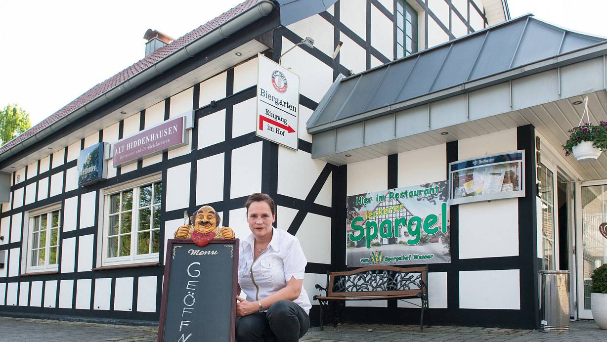 Die Sommersaison läuft: Tatjana Böselt vor dem Restaurant Alt Hiddenhausen. Jetzt könnte ein Gerücht das wichtige Saalgeschäft in den Jahren 2020 und 2021 gefährden. | © Ralf Bittner