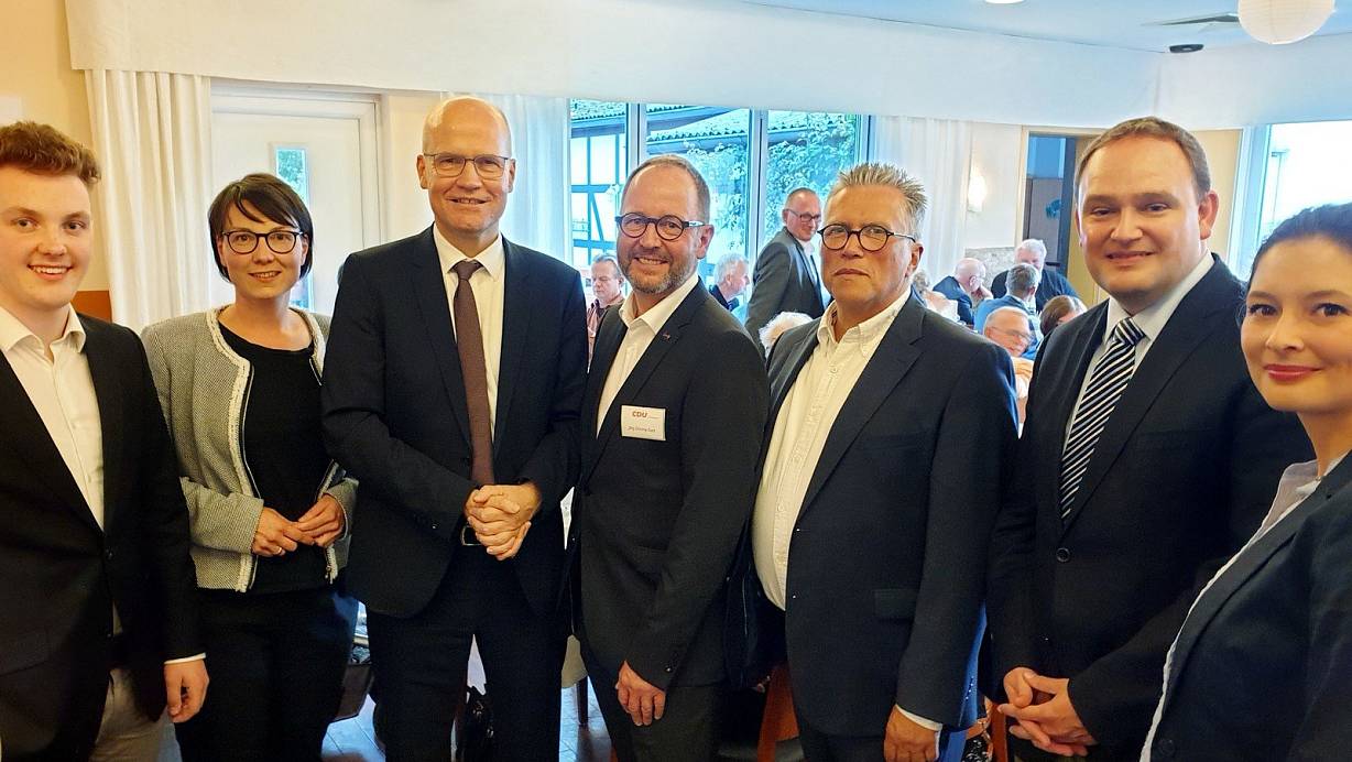 Die CDU positionierte und behauptete sich im Laufe der Jahre, doch dass sie nie den Bürgermeister stellen konnte, fand Festredner Ralph Brinkhaus, Mitglied des Bundestages und Fraktionsvorsitzender der CDU in demselben, mit einem Schmunzeln „total ungerecht". Der hochkarätige Gast aus Berlin hatte sich eine Stunde Zeit genommen, um der Parteibasis in Hiddenhausen nicht nur zu gratulieren, zu 50 Jahren erfolgreicher kommunalpolitischer Arbeit. Es war Brinkhaus auch ein Anliegen, die aktuelle innen- und außenpolitische Arbeit der CDU-Fraktion im Bundestag zu skizzieren und gegebenenfalls zu verteidigen, wie das gerade geschnürte „Klima-Paket".