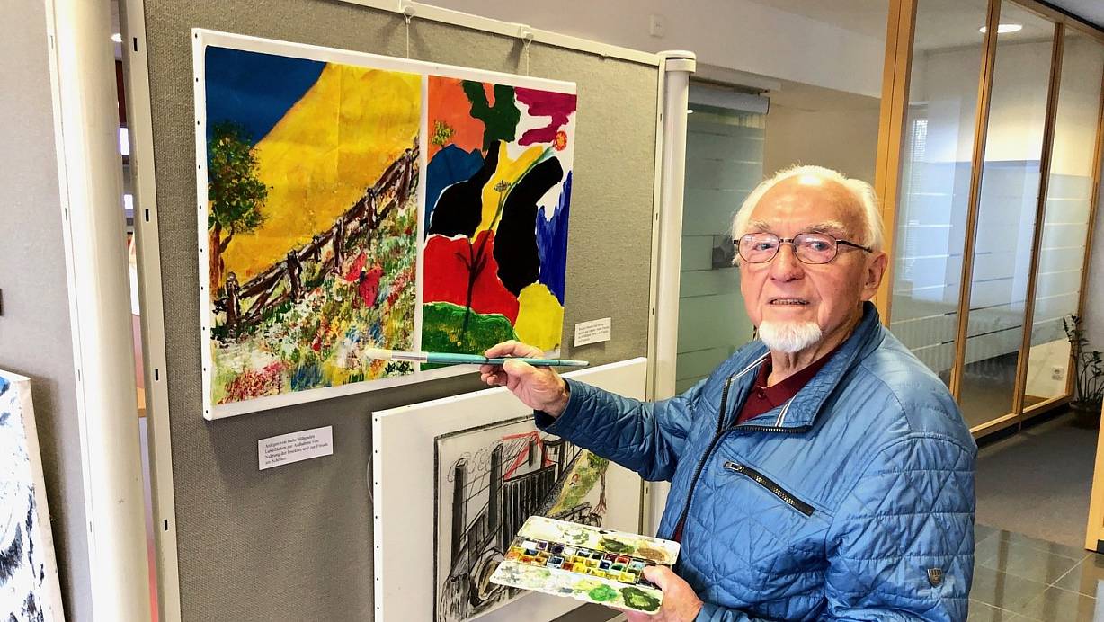 Farbenfreund: Hans Schnatwinkel mag Malen und Natur. In seiner Ausstellung in der Sparkassenfiliale in Schweicheln setzt er sich mit den Themen Naturschutz und Umweltzerstörung auseinander. | © Alexander Jenniches