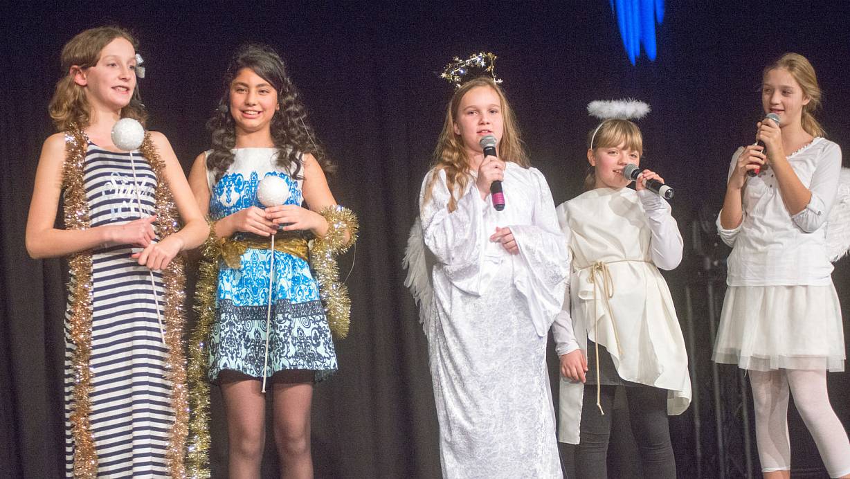 Schüler aller Jahrgangsstufen der Olof-Palme-Gesamtschule bieten beim Weihnachtsabend in der Aula ein abwechslungsreiches Programm mit viel Theater und Kabarett.