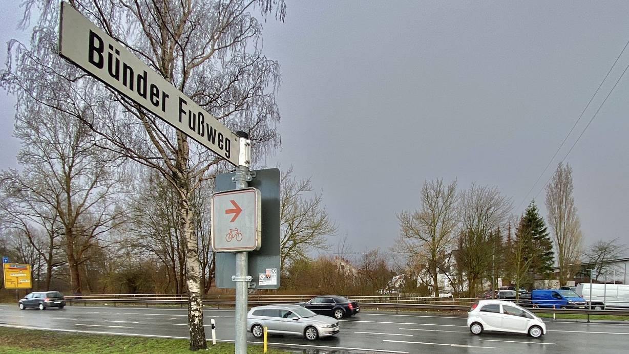 Eine mögliche Querungsstelle von Hiddenhausen ins Stadtgebiet nach Herford ist der Bünder Fußweg, der aus Sundern kommt. Wie sich die B239/B61 für Radfahrer schnell und sicher überwinden ließe, steht zur Diskussion. | © Alexander Jenniches