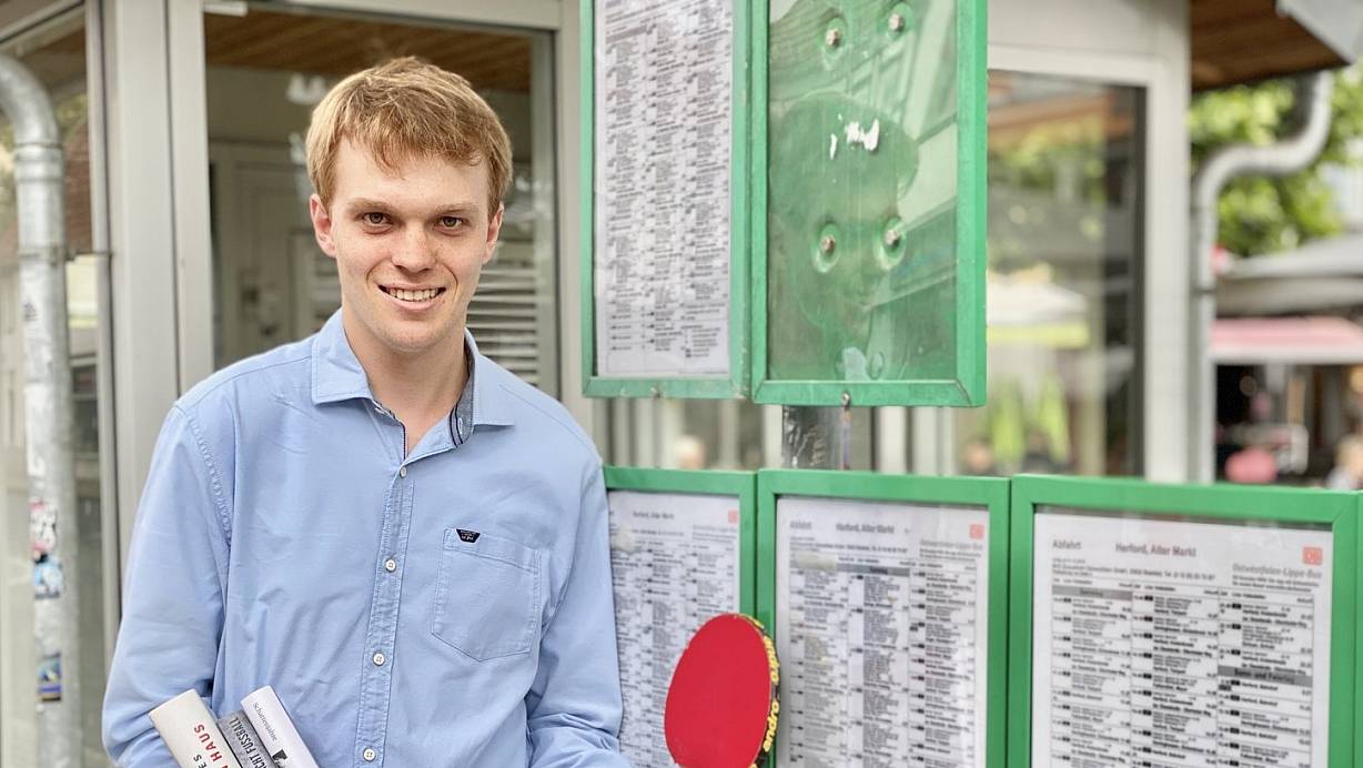 Tischtennis und Lesen in der Freizeit, ÖPNV in der politischen Arbeit. Nico Klinger verbindet es und wünscht sich, dass junge Menschen nicht nur mit einem günstigen Busticket zur Schule fahren können, sondern es auch an sieben Tagen in der Woche zur Freizeitgestaltung nutzen können. | © Alexander Jenniches