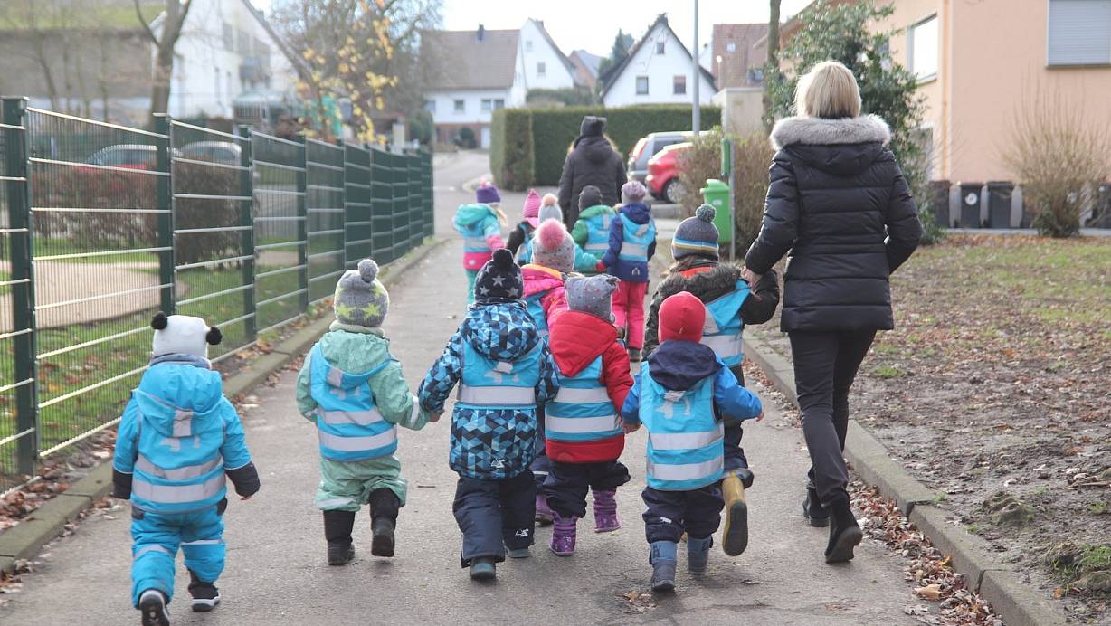 Kinder der Kita Hiddenhausen gehen in der Gemeinde spazieren. Hiddenhausen ist bei jungen Familien beliebt, Kitas und Grundschulen sind voll. Deswegen boomt auch das Programm "Jung kauft Alt" in Hiddenhausen. | © Alexandra Golfinger