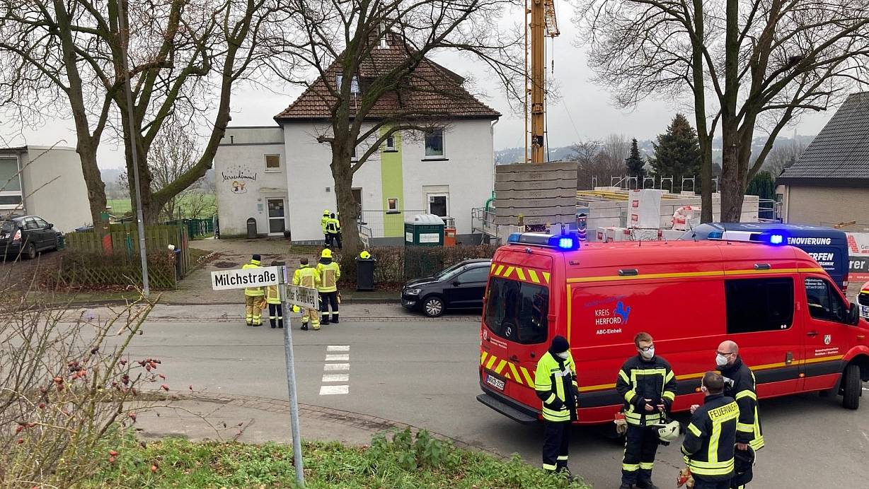 Die Milchstraße ist wegen des Einsatzes gesperrt gewesen. Wie im August löst der Gasmelder aus. Die Feuerwehr überprüft mit Messgeräten.