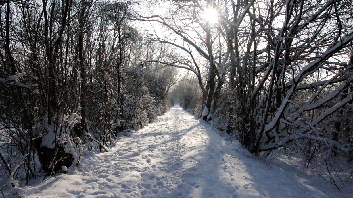 Die Morgensonne blinzelt durch die Äste und wirft ihr Licht auf den verschneiten Weg - schöner kann ein Winterspaziergang kaum sein. | © Meiko Haselhorst