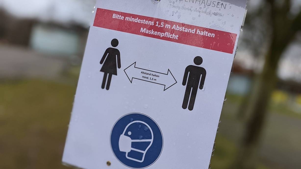 Ein Schild erinnert vor der Olof-Palme-Gesamtschule an die Einhaltung von Maskenpflicht und Abstandsgebot. | © David Knapp