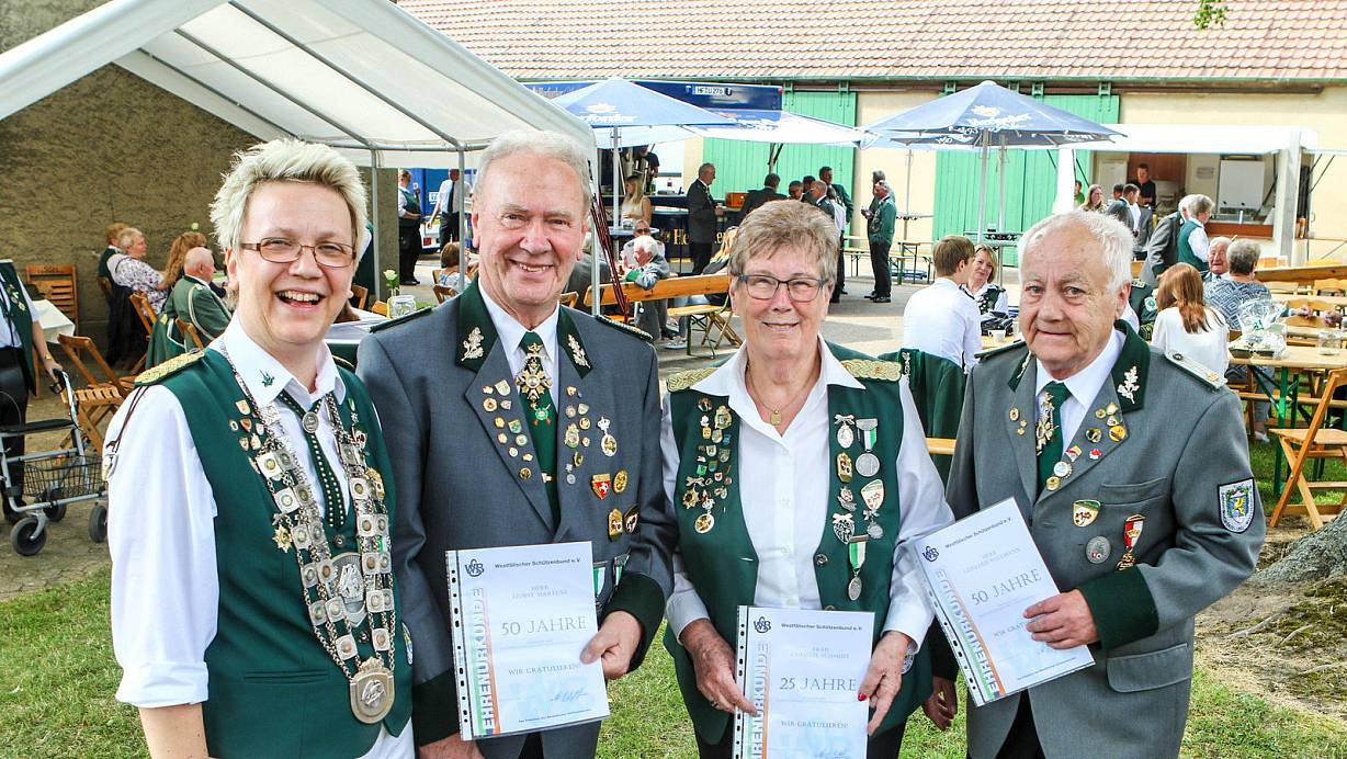 Conny Martens (v.l.) ist seit 25 Jahren im Verein, ihr Vater Horst Martens seit 50 Jahren, Christel Schmidt seit 25 Jahren und Gerhard Wellmann seit 50 Jahren. | © Yvonne Gottschlich