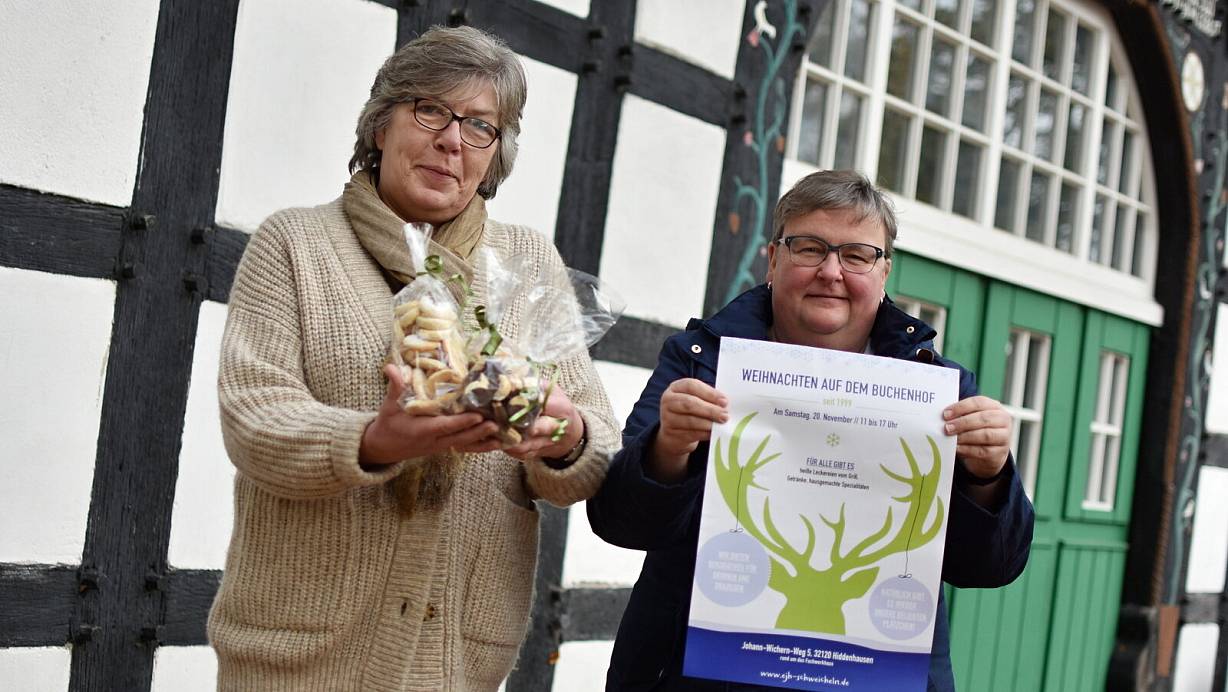 Claudia Röhe (l.) und Andrea Fischer gehören zum Organisationsteam des Weihnachtsmarktes. | © Ev. Jugendhilfe Schweicheln