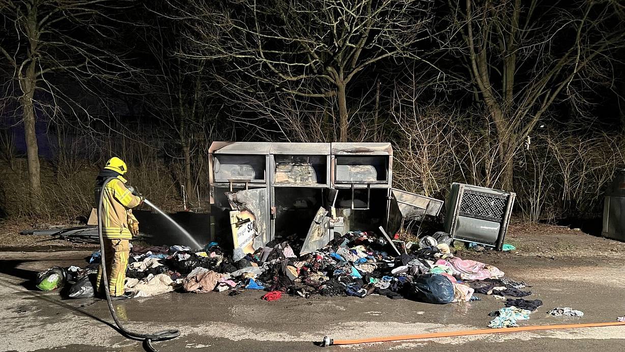 Spenden durch Feuer völlig zerstört: Wieder brennen Altkleider-Container