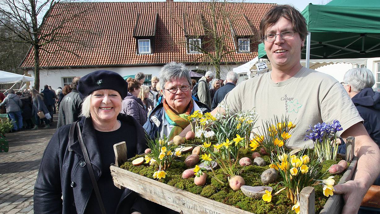 Der Pflanzen- und Gartenmarkt lockt zum Saisonstart Gartenfreunde aus nah und fern auf das Gut Bustedt. Das Fest ist auch für die Anbieter ein attraktives Ziel.