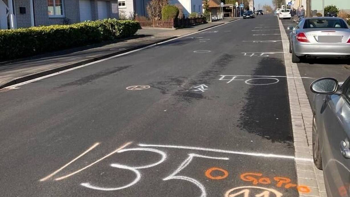 Kurz nach dem Unfall: Auf der Straße sind die Markierungen der Spurensicherung zu sehen. | © Jobst Lüdeking