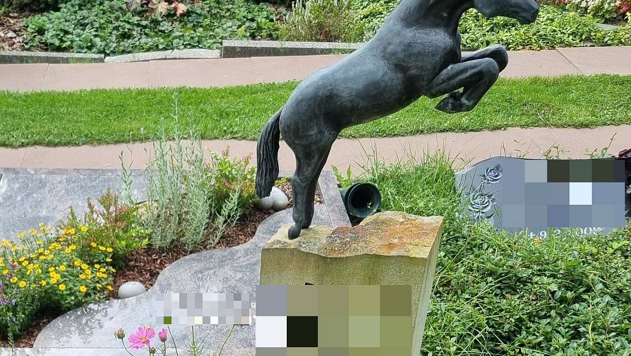 So sah der Grabstein mit der Pferdeskulptur vor dem Diebstahl aus. | © Privat