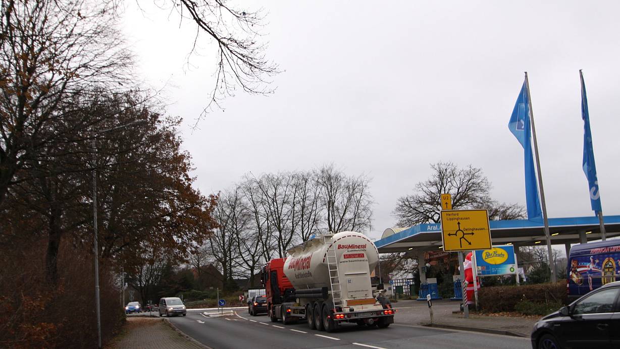 Zahlreiche Lkw fahren täglich über die Bünder Straße und die Herforder Straße (B239) in Hiddenhausen. | © Björn Kenter