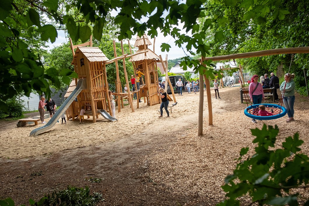 Vor allem die Seilbahn stand bei den Kindern bei der Eröffnung hoch im Kurs. Auch die Nestschaukel und die verschiedenen Etagen der hölzernen „Hexenburg“ waren so gut wie immer besetzt. „Ich finde, der Platz ist richtig schön geworden“, sagte Hüffmann zu den Kindern. Er sei sogar ein wenig neidisch, da er zu schwer sei, um die Geräte noch zu nutzen.
