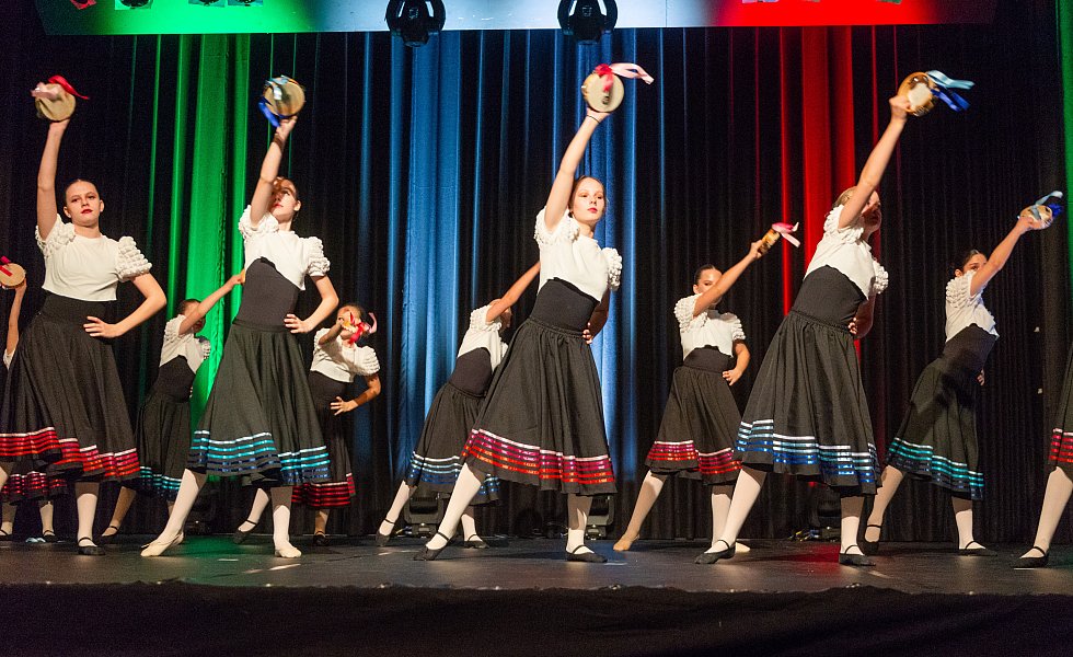 Durch die diversen Zeitsprünge auf einen mittelalterlichen Marktplatz, in die Zukunft oder in die Steinzeit gab es reichlich Raum für 30 unterschiedliche Choreographien. Tarantella tanzende Mädchen, ein orientalischer Tüchertanz, Musketiere aber auch Hexen – mal wild, dann wieder hilfsbereit – ließen den Marktplatz lebendig werden.