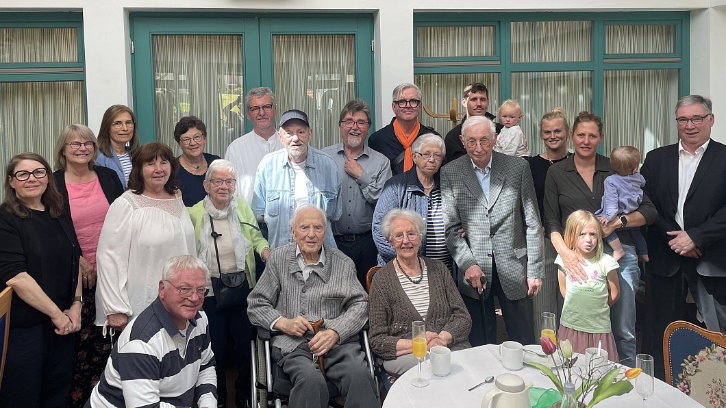 Hiddenhausen. Das seltene Fest einer Gnadenhochzeit, 70 Jahre verheiratet, feierten die Eheleute Fritz (96) und Irmgard Lohmeyer (91) nun im Seniorenwohnhaus Stephanus-Zentrum in Lippinghausen. Das bis Januar 2024 am Herrendienstweg wohnende Paar genoss eine kleine Feier, die von ihren Söhnen, Pfarrer Reinhard Lohmeyer, Eckhard, Stefan und Werner Lohmeyer sowie ihrem Neffen, Kirchenmusiker Andreas Lechtermann, liebevoll und persönlich in österlicher Freudenstimmung gestaltet wurde. Grußworte sprachen Pfarrer Kai-Uwe Spanhofer und Bürgermeister Andreas Hüffmann. Nicht zuletzt gab es auch einen Gruß von Bundespräsident Frank-Walter Steinmeier.