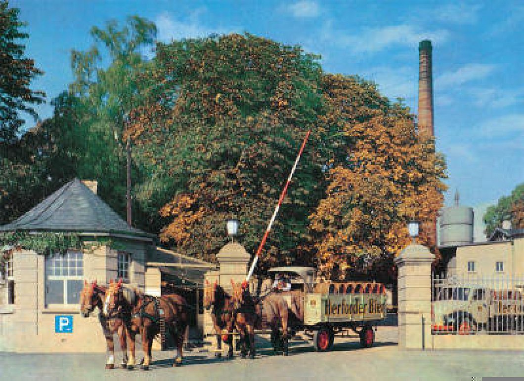 Die regionale Ausfuhr der Bierfässer erfolgte bis ins Jahr 1911 ausschließlich durch oft imposante Pferdegespanne. Mit einem gut durchdachten System verbreitete sich das Herforder Pils weit über Herford hinaus. Der Radius vergrößerte sich noch einmal, als motorisierte Lastwagen den Transport übernahmen.