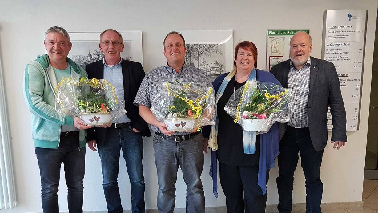 Wechsel an der Spitze der CDU-Fraktion in Kirchlengern: Christian Bobka (v.l.), Detlef Kaase, Frank Knickmeier, Birte Rögner und Bürgermeister Rüdiger Meier. Foto: CDU Kirchlengern | © CDU Kirchlengern
