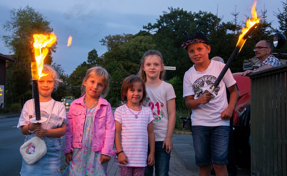 Am nächsten Tag startete am Abend das Fest mit dem Spielmannszug Kirchlengern, der erneut in das Zelt einmarschierte und ab 21 Uhr den großen Fackelumzug anführte. Mehr als 100 kleine Flammen erhellten die Straßen von Südlengern. Die Kinderfeuerwehr, die insgesamt 40 Mitglieder umfasst, hatte sich am Morgen bereits eigene Fackeln gebastelt. Andere Besucher brachten ebenfalls selbst gebaute Fackeln mit. Die kleineren Besucher brachten selbst kreierte Laternen mit. Der Fackelumzug, an dem hunderte Menschen beteiligt waren, wanderte entlang der Elsestraße.