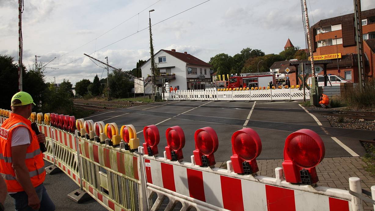 Mit 20 Einsatzkräften und sechs Fahrzeugen wurde die Unfallstelle gesichert. Auch der Zugverkehr wurde in beide Richtungen eingestellt. Erst ein Notfallteam der Deutschen Bahn konnte die Gefahrenstelle abschließend sichern. Zuerst wurde der Strom im betroffenen Streckenabschnitt abgestellt und dann die beiden Oberleitungen geerdet, wie ein Bahnmitarbeiter erklärt. Erst danach konnte mit der Schadensanalyse begonnen werden. Der Bahnverkehr kam auf dem gesamten Streckenabschnitt zum Erliegen. Ein Schienenersatzverkehr wurde zwischen Bünde und Löhne eingerichtet. Der Bahnübergang soll bis Dienstag gesperrt bleiben.