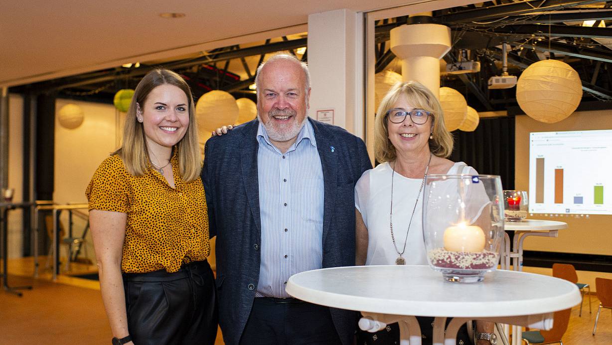 Rüdiger Meier bleibt Bürgermeister. Darüber freuen sich seine Tochter Rebecca und seine Frau Uta. Seine Familie fieberte im Forum der Erich-Kästner-Gesamtschule mit. | © Noah Wedel