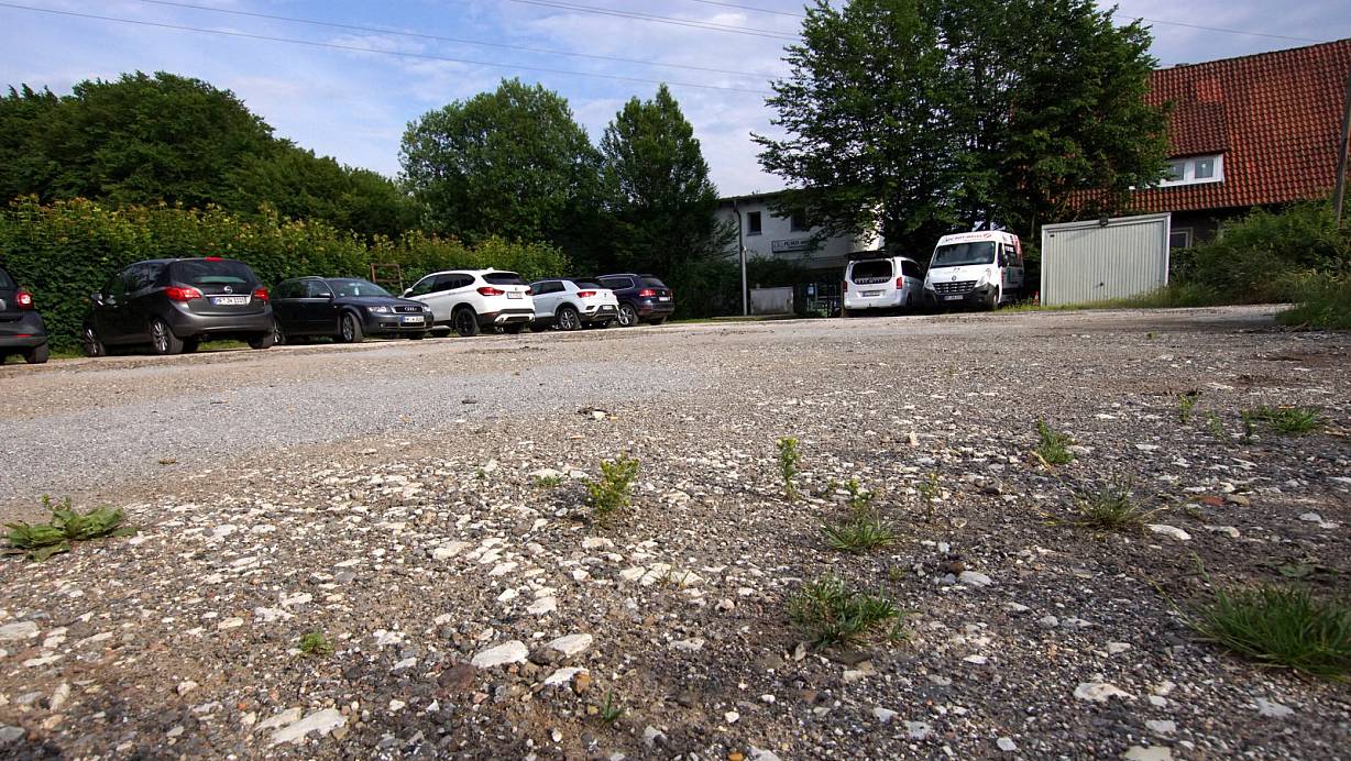Der öffentliche Parkplatz am Schelmenbrink ist sanierungsbedürftig. Deshalb machen sich drei Vereine für einen Ausbau stark. | © Niklas Krämer