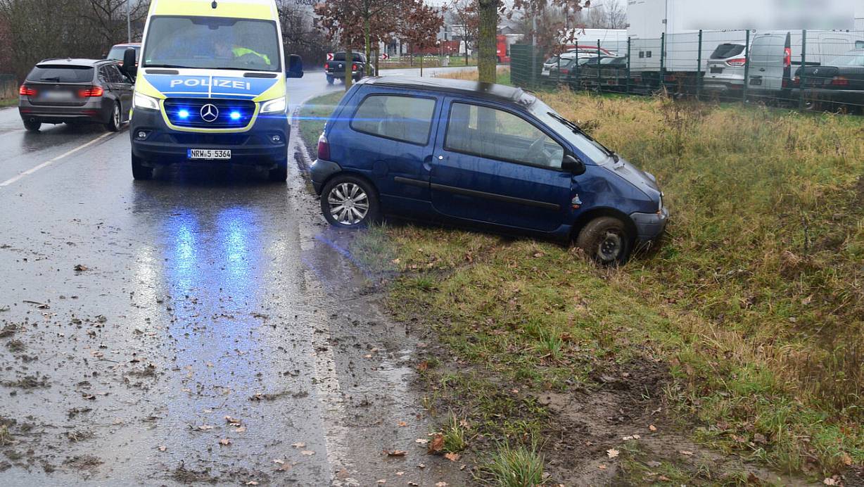 Der verunglückte Renault Twingo des Flucht-Fahrers. | © Polizei Kreis Herford