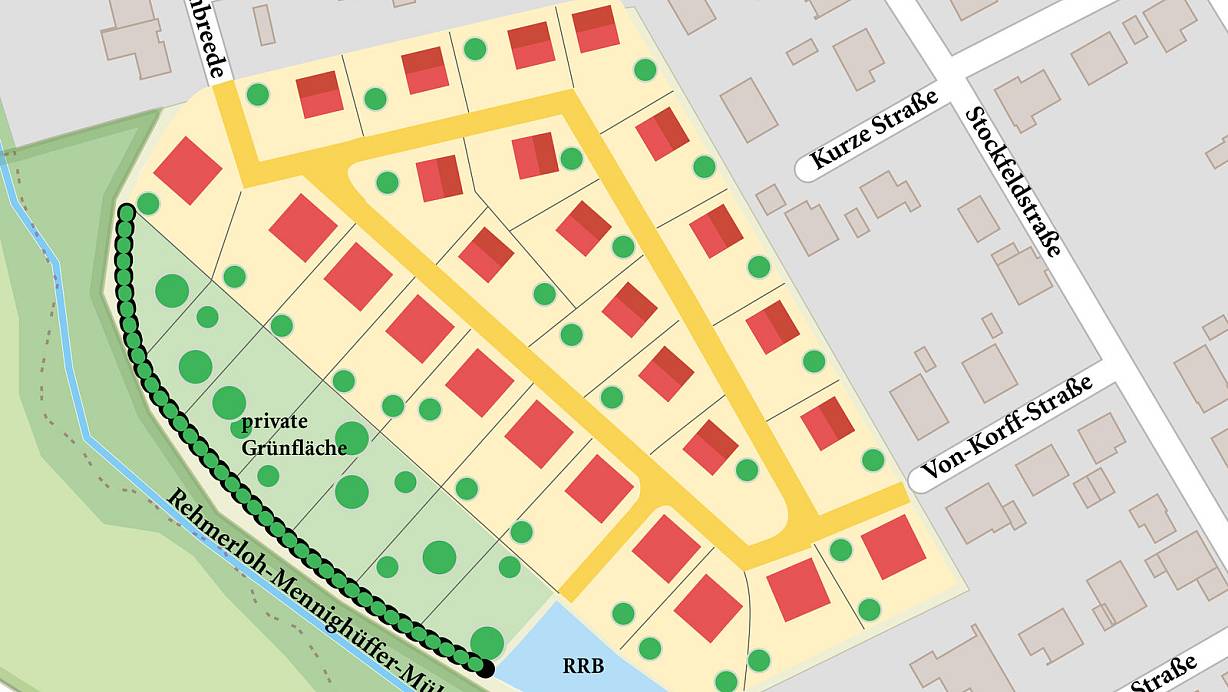 So sieht der Gestaltungsplan zum Bebauungsplan "Steinbreede" aus. An der Unterseite ist noch ein Teil des Blumengroßhandels darstellt, der umgestaltet werden müsste, damit eine Erschließung über die Stiftstraße möglich ist. | © Jürgen Schultheiß
