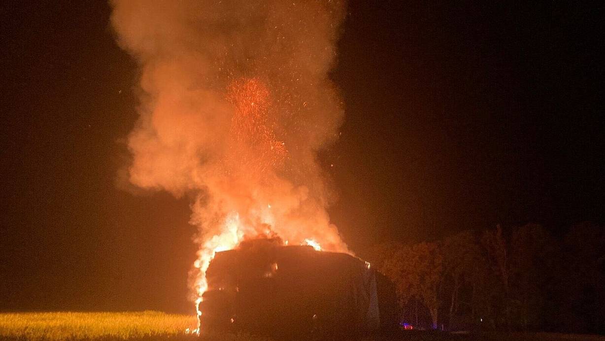 700 Strohballen brennen in Kirchlengern: Brandstiftung ist nicht auszuschließen