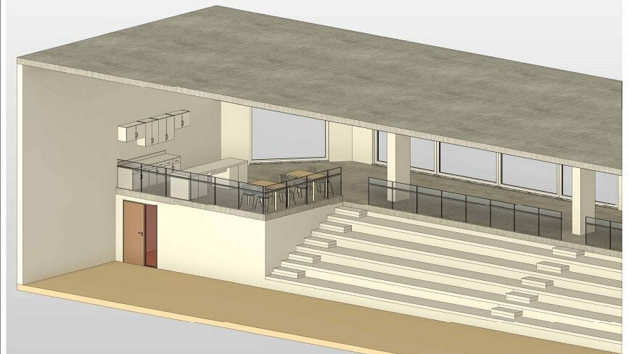 Der Vorschlag des TV Häver beinhaltet eine feste Verkaufsfläche neben der Tribüne. Darunter soll ein Lagerraum entstehen. Die Fläche würde etwa ein Drittel der ausfahrbaren Tribüne wegnehmen. | © TV Häver
