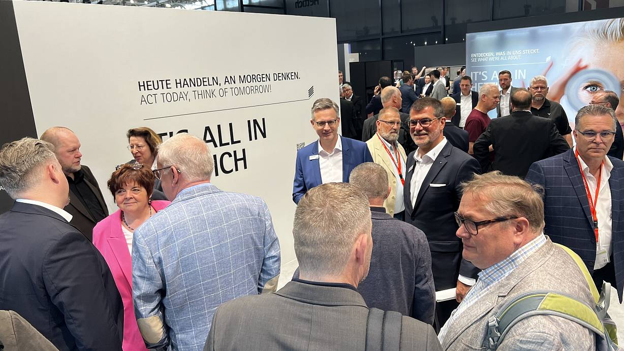 Andreas Hettich (l.) und Uwe Kreidel präsentieren Produkte und Neuheiten auf dem gut besuchten Messestand des Unternehmens. | © Stefan Boscher