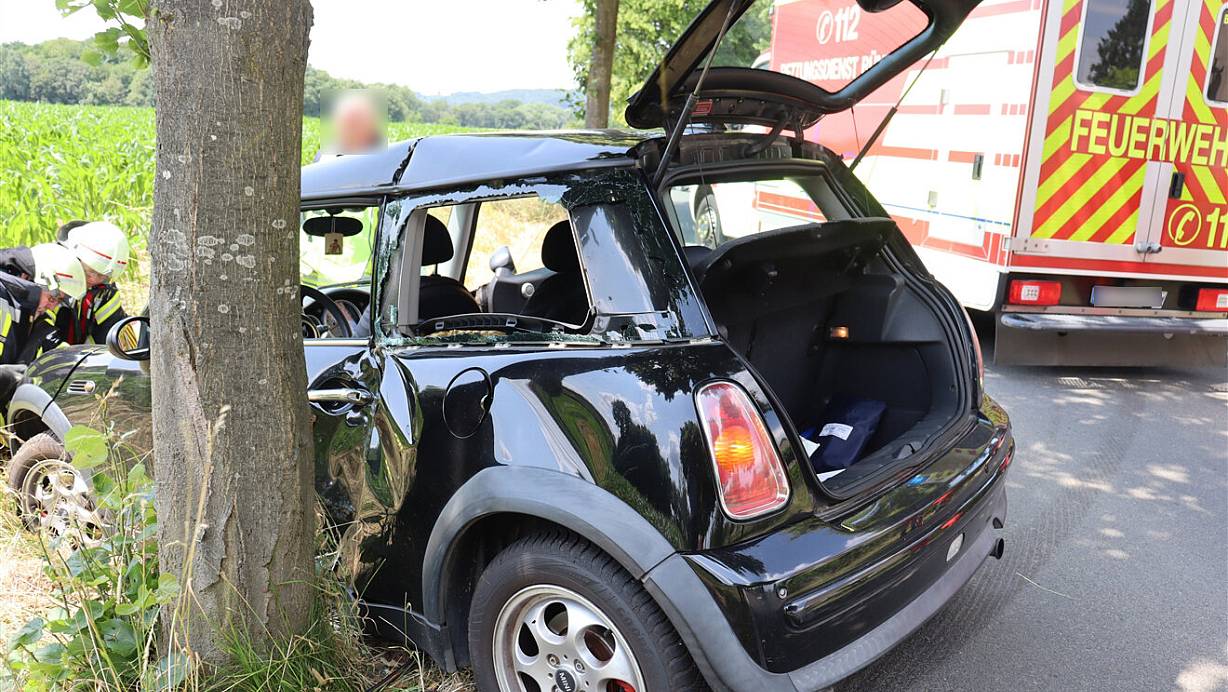 Unfall im Kreis Herford: Mutter muss ausweichen und fährt mit Kindern gegen Baum