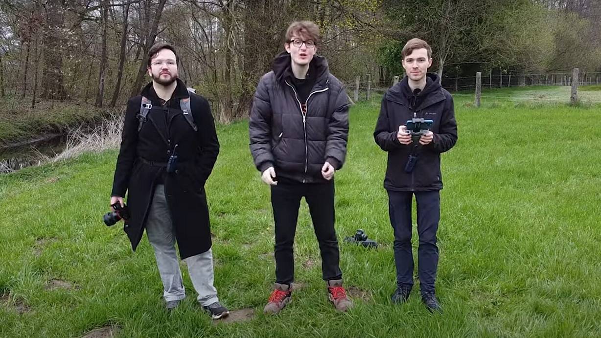Kameramann Bas Tortle (v.l.) und die YouTuber Quinten Hyde und Jesper Lust erkundeten einen Wald in Kirchlengern, den gespenstigsten in Westeuropa. | © Privat/YouTube