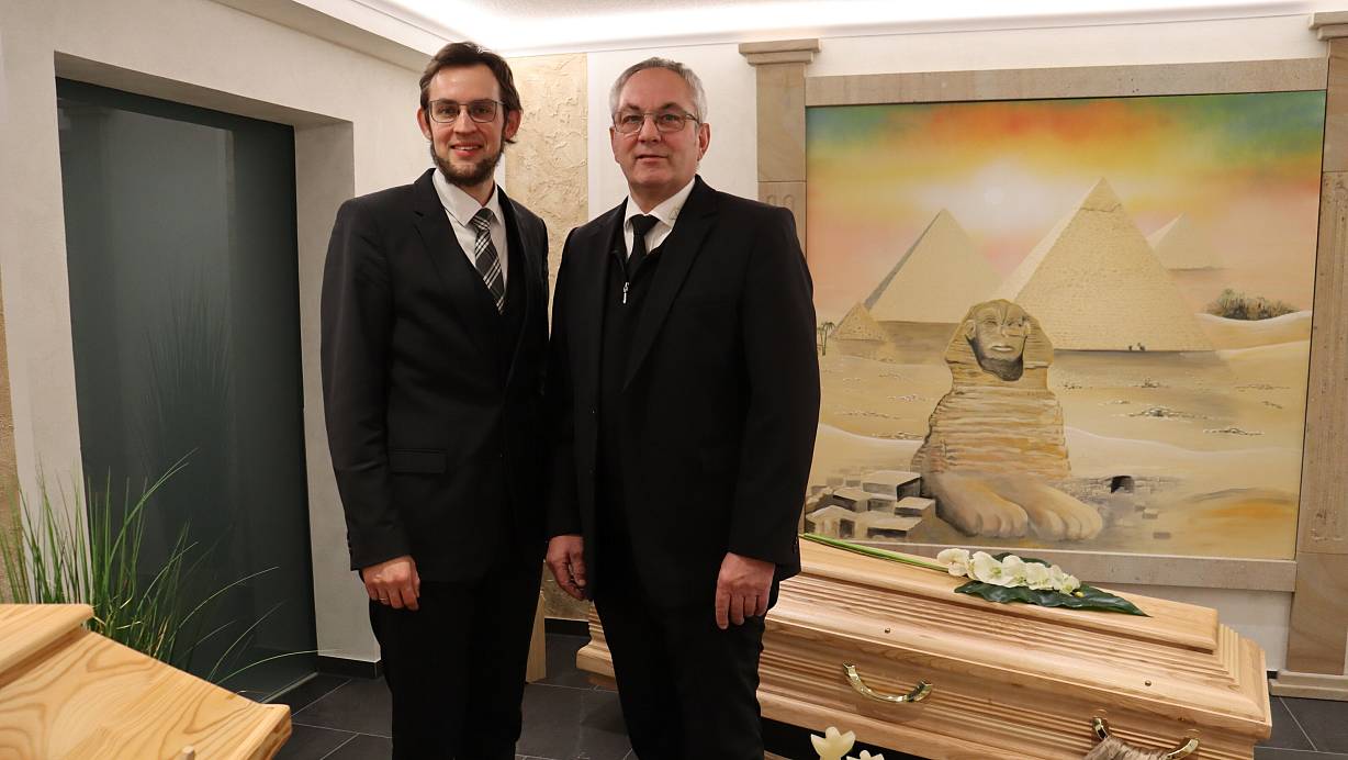 Generationenwechsel: Seit dem 1. Januar ist Philipp Niemann (links) Geschäftsführer des Bestattungshauses Niemann. Sein Vater Jürgen Niemann ist stolz, dass sein Sohn in seine Fußstapfen tritt. | © Shannon-Lee Bendig