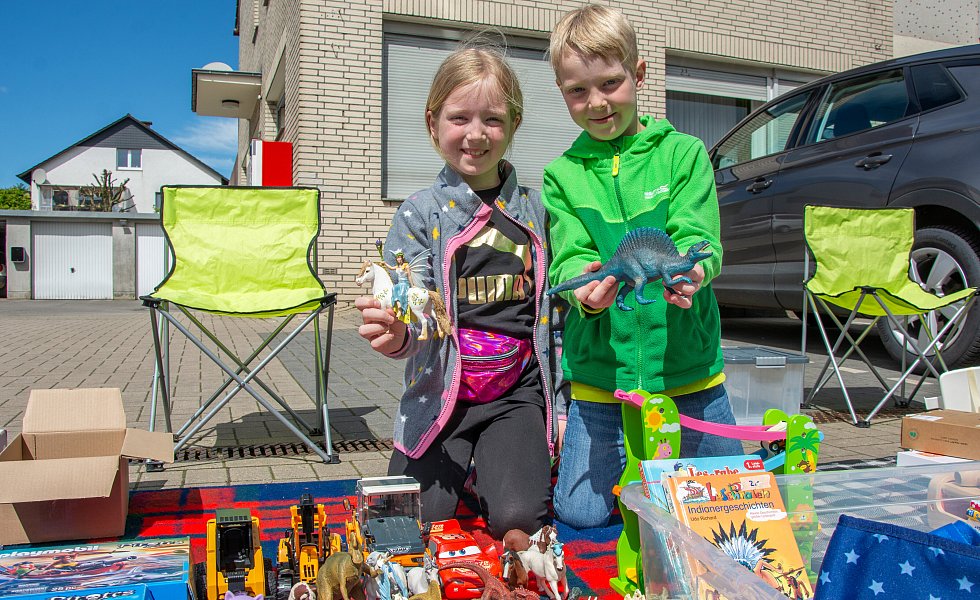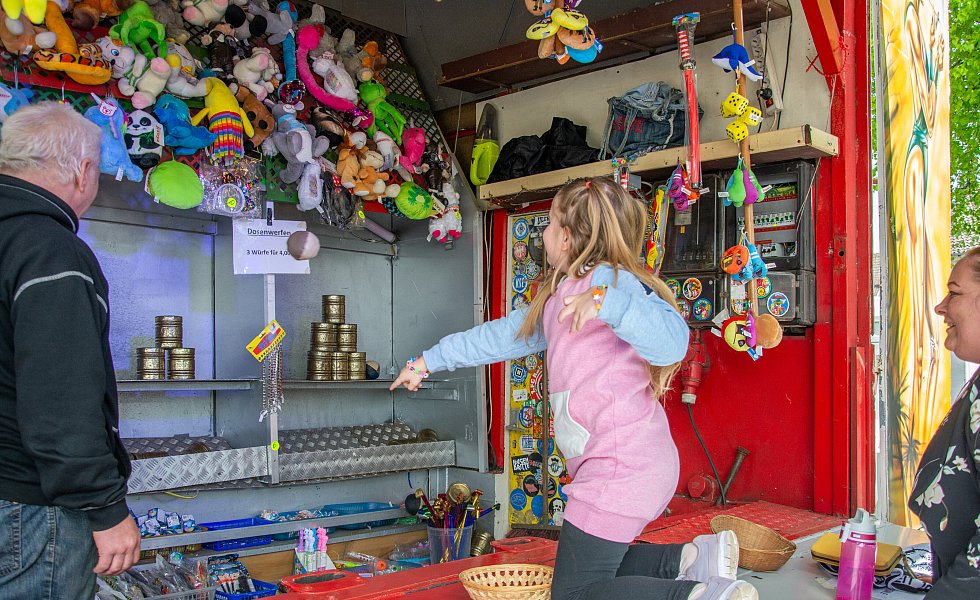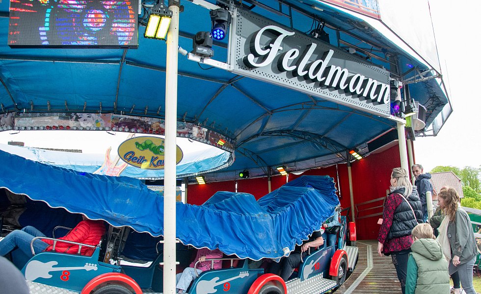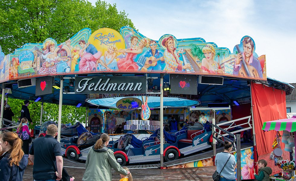 Außerdem konnten die Besuchenden auf dem Karussell oder der Raupe von Feldmann eine wilde Fahrt erleben. „Feldmann, das ist einfach Kult“, sagte eine wartende Besucherin vor ihrer Fahrt in dem 1949 gebauten Karussell. Gestöbert werden durfte auch. Auf einem Flohmarkt konnten die Besucherinnen und Besucher nach Kinderkleidung und Spielzeug, aber auch nach anderen Schnäppchen suchen.