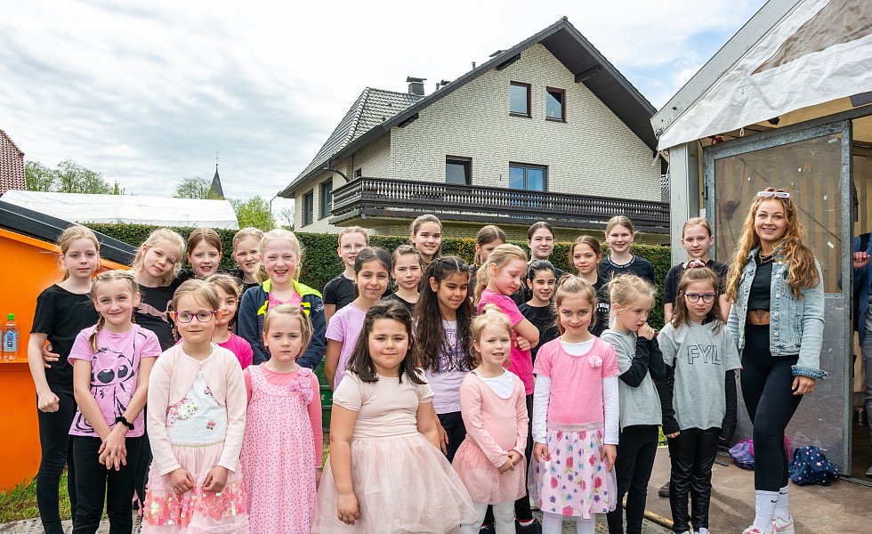 Bereits zum Quizabend am Samstag herrschte in dem Festzelt reges Treiben. Doch am Sonntagmittag ging die Party richtig los, als die Familienband Krawallo das gut gefüllte Zelt zum Tanzen brachte. Dabei sollte es auch sportlich zugehen, denn viele verschiedene Tanzgruppen freuten sich schon auf ihren Auftritt. Darunter auch Sophia und Sophie vom Gemeindesportverband Hüllhorst, die mit ihrem Team aufgeregt warteten. „Wir sind bisher nur vor den Eltern aufgetreten“, berichteten sie.