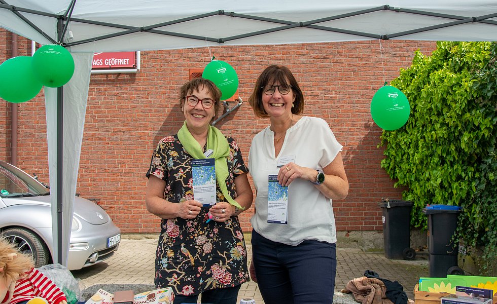 „Die Resonanz ist super“, freuten sich auch Jan Bastian Wiele und André Knickmeier vom BV 21, dem örtlichen Fußballverein: „Die Kinder haben richtig Spaß am Glücksrad“. Zum ersten Mal mit dabei war das ambulante Kinder- und Jugendhospiz Bünde. Die Mitglieder wollten auf ihre Arbeit aufmerksam machen und das Interesse an ehrenamtlicher Mitarbeit wecken. „Wir wollen zeigen, dass es nicht immer so ein schweres Thema ist“, erklärte Andrea Ritz.