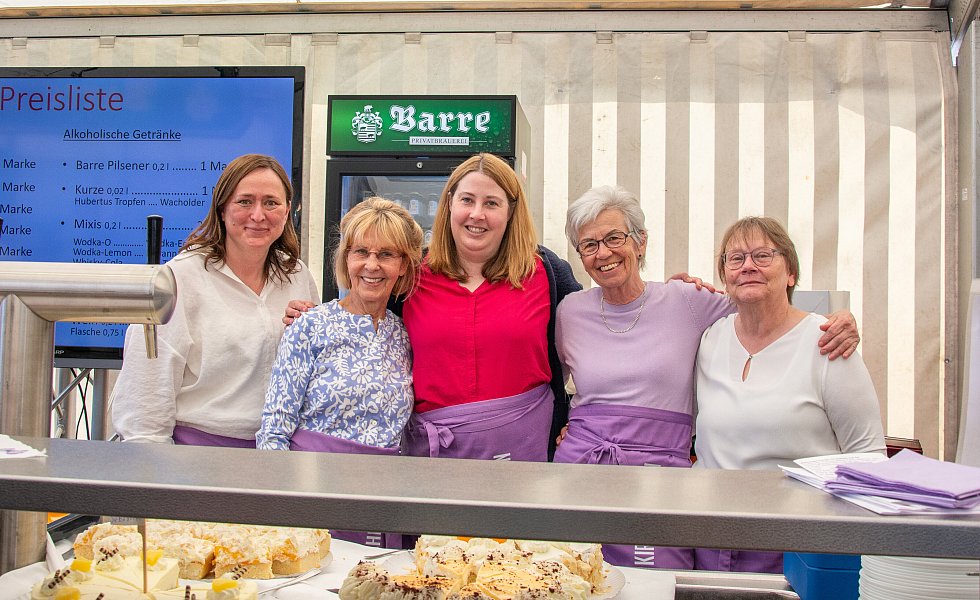 Die Versorgung im Zelt wurde ebenfalls sichergestellt: „Es ist schön, weil jeder hier das leistet, was er kann und das ist einfach ein schönes Zusammenspiel“, erklärte Nina Schröder von den Landfrauen, die mit vielen Helferinnen insgesamt 40 Kuchen und Torten, sowie 70 Donuts gebacken hatten.