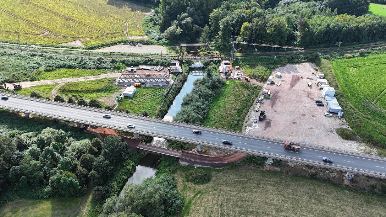 Im Oktober wird die neue Bahnbrücke an die Stelle des alten Bauwerks versetzt.