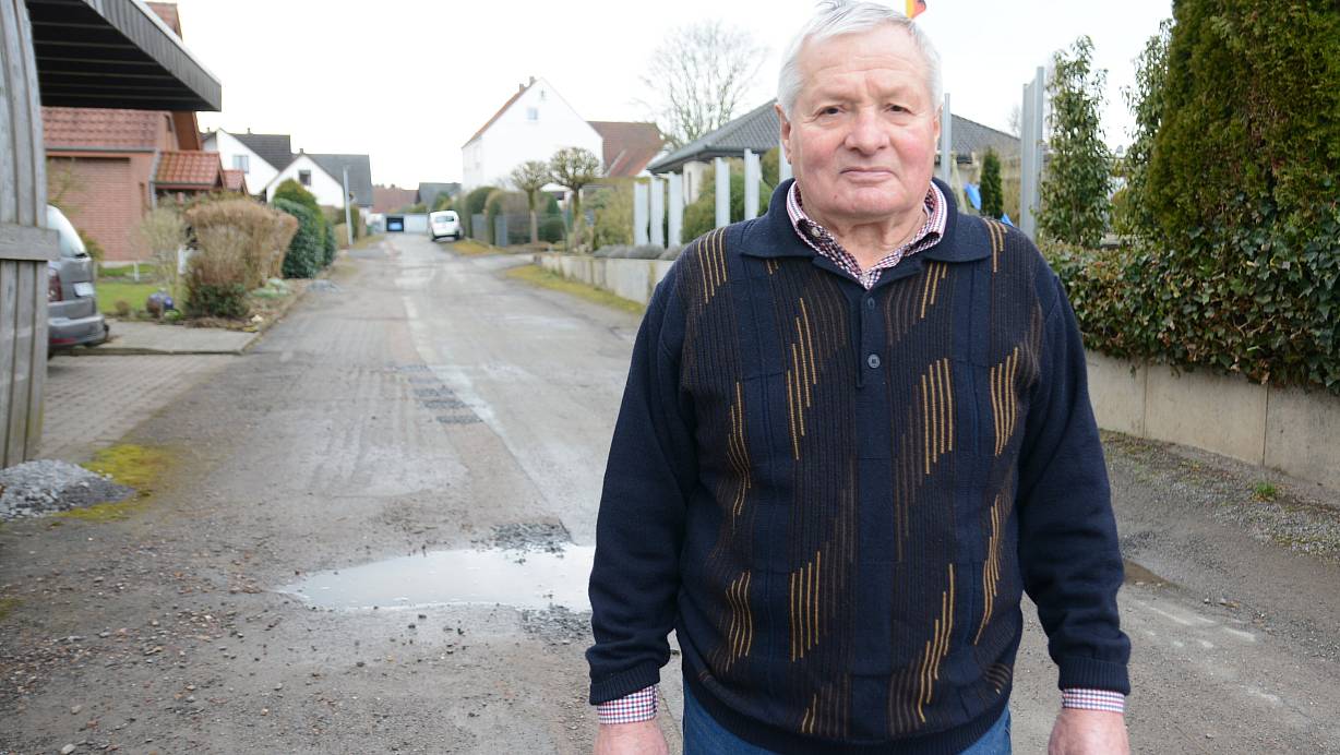 Marode Straße in Kirchlengern: 86-Jähriger flickt Schlaglöcher selbst