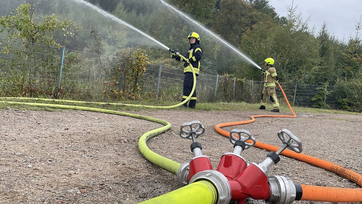 Die Wasserversorgung ist ein Kernthema bei der Großübung in Kirchlengern. Die Fragen: Woher bekommen die Einsatzkräfte das benötigte Löschwasser und wie wird es über Kilometer an die Einsatzstellen - hier auf den Reesberg - transportiert? | © Natalie Gottwald