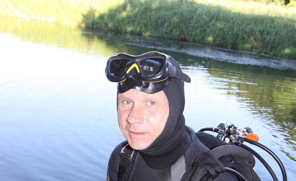 Dass aber die Suche nach dem tiefsten Punkt der Stadt zu einem richtigen Tauchgang werden würde, damit hatte die Redaktion vorher nicht gerechnet. Bei uns gab es eher die Vorstellung, dass sich ein Taucher im Neoprenanzug ins Wasser stellen würde, dass also die Werre nicht tiefer als 1,80 Meter sein sein würde.