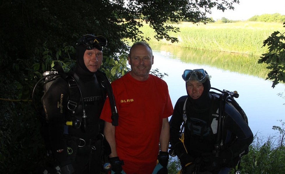 Die Taucher schwärmen von dem Tauchgang an diesem schönen Sommerabend. Die Werre ist 21 Grad warm und bietet beste Bedingungen. „So klar habe ich die Werre noch nie erlebt“, sagt Huse. Und so fällt es ihnen auch nicht schwer, Fundstücke unter Wasser auszumachen. Zwei Einkaufswagen. „Damit wurden Getränke zur Eiche transportiert“, sind sich die Männer einig. Die Taucher ziehen sie aus dem Wasser. Und dann haben die Aale, Flusskrebse und Barsche wieder ihre Ruhe.