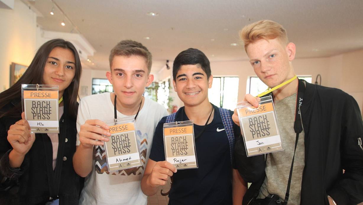Mit dem Pressepass kommen sie überall hin: Mia (v. l.), Ahmet, Jan und Rojer (alle von der Städtischen Realschule) begleiten das Event mit Kameras. | © Susanne Barth