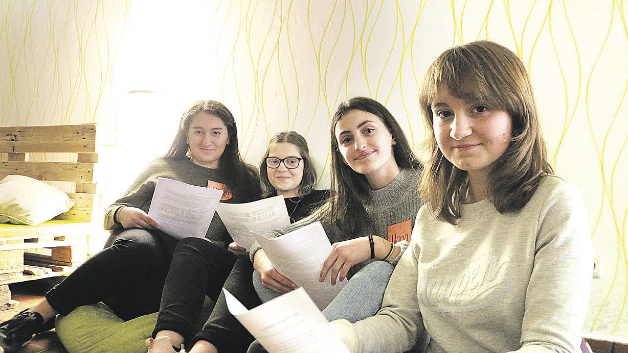 Die Neuntklässler der Städtischen Realschule, Nazar (v. l.), Begüm, Maria und Angelique im Jugendzentrum Riff. | © Susanne Barth