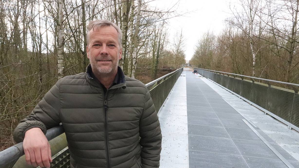 Im Park: Geschäftsführer Dirk Hinke steht auf der Brücke, die einen neuen Belag erhalten hat. | © Dirk Windmöller