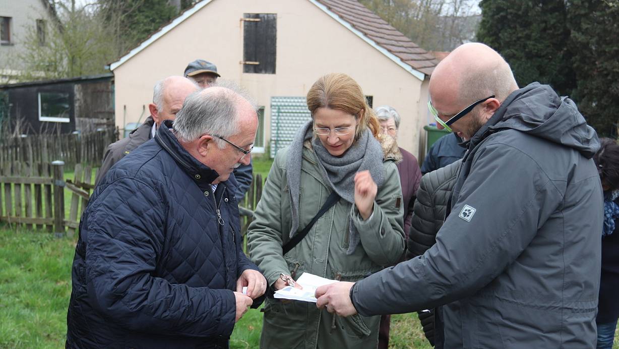 Sprechen über den Plan: Der Ausschussvorsitzende Heinz Dahlmeier (v.l.), Anke Nattkemper vom Amt für Stadtentwicklung und Architekt Henning Bökamp. | © Dirk Windmöller