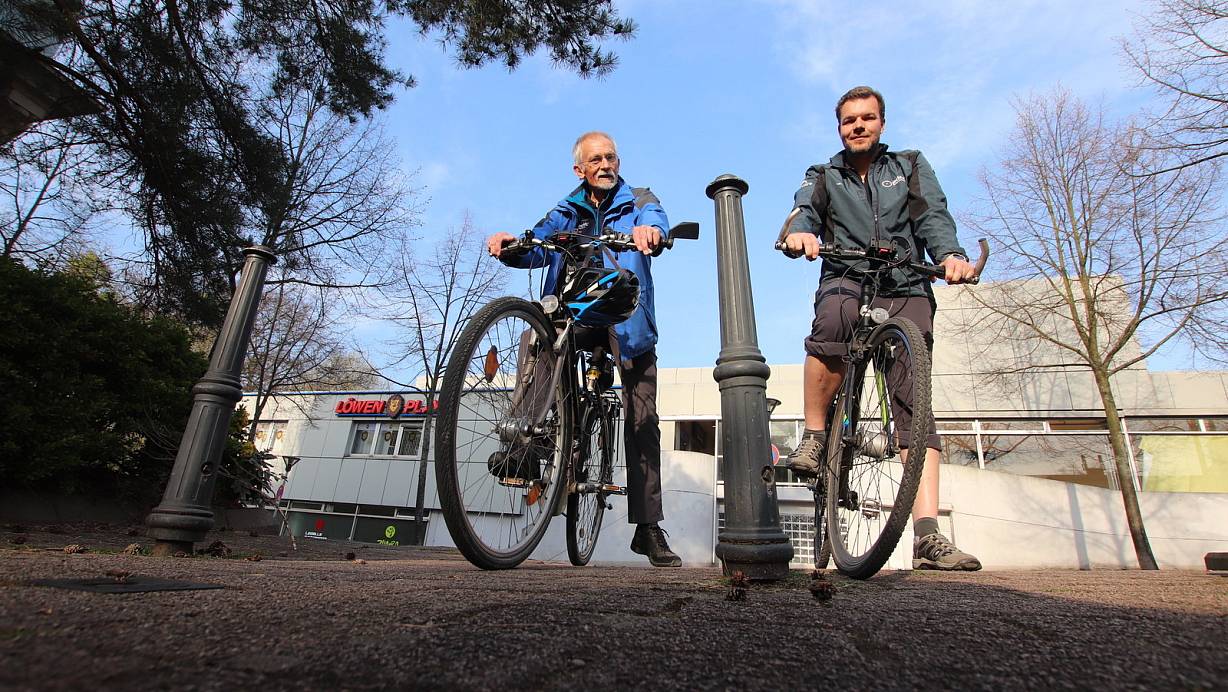 Mittendurch: „Nicht optimal“, finden Georg Hofemann und Andreas Edler vom ADFC Löhne und Bad Oeynhausen an der Elisabethstraße in Bad Oeynhausen. | © Ulf Hanke